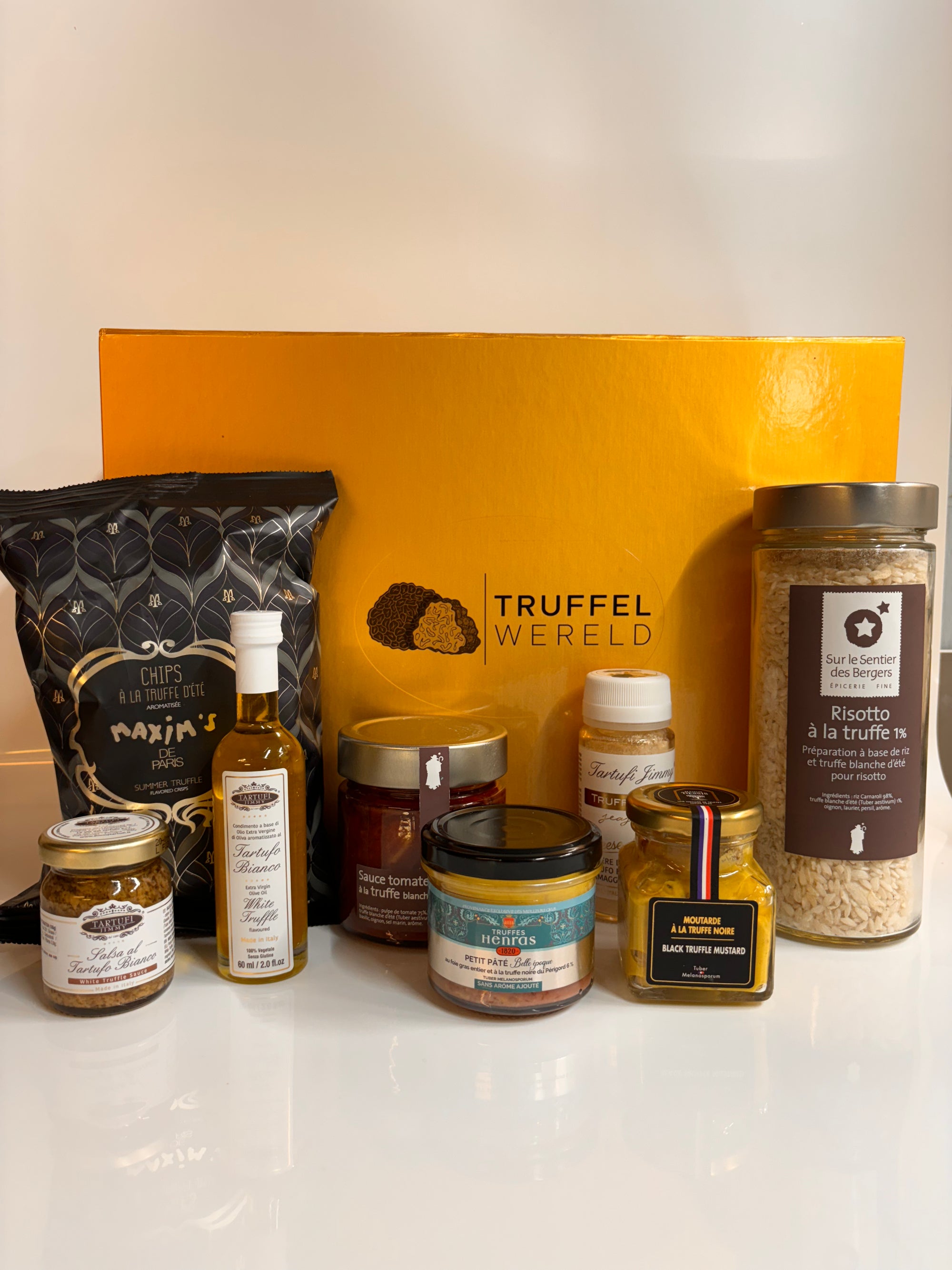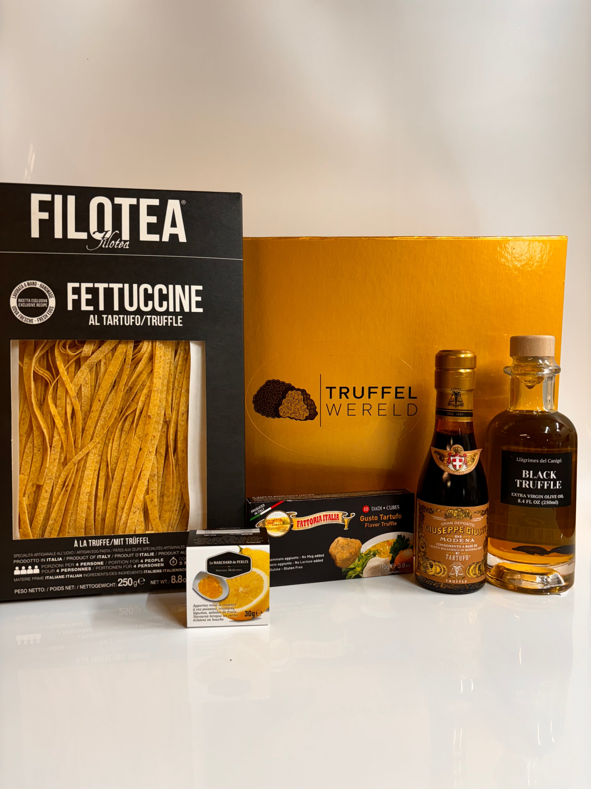 Ingrediënten (voor 4 personen): 300 g carnaroli rijst 1 kleine ui (fijngehakt) 2 teentjes knoflook (fijngehakt) 750 ml truffelbouillon (warm) 150 ml droge witte wijn 2 el olijfolie (bij voorkeur met een vleugje truffelolie) 50 g Parmezaanse...